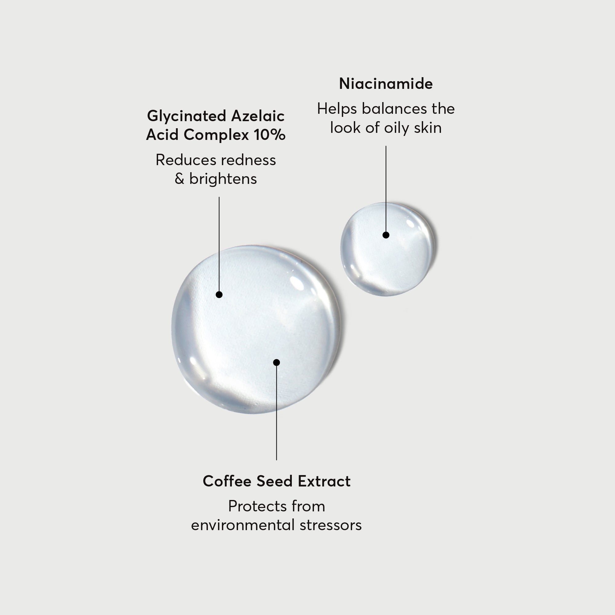 Our azelaic acid serum contains a high concentration of a glycinated azelaic acid complex, along with niacinamide, vitamin C and coffee seed extract to help improve the appearance of skin tone, for brighter-looking skin. Formulated with an azelaic acid derivative, this helps to balance excess oil, leaving skin feeling comfortable and hydrated.