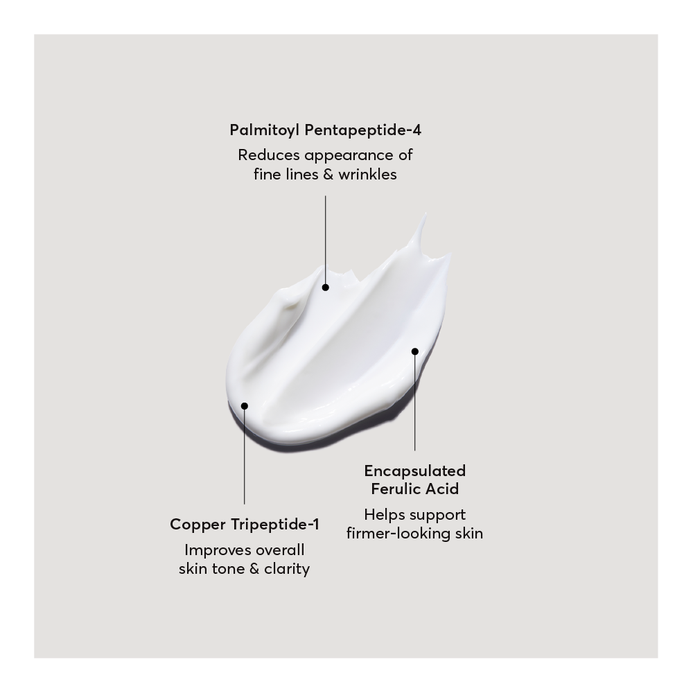 Multi-Peptide Advanced Serum: Our powerful serum is formulated with an advanced multi-peptide blend, including encapsulated copper peptides and Argireline® Amplified peptide, to improve texture and reduce the appearance of fine lines and wrinkles. Plus, encapsulated ferulic acid and collagen help firm skin’s appearance to support a more youthful-looking complexion.